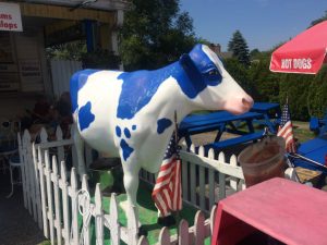 I had not had any ice cream at Janine’s, but it was a warm day, and a milkshake sounded good as I passed by. Besides, who could resist the blue and white cow who greeted visitors?